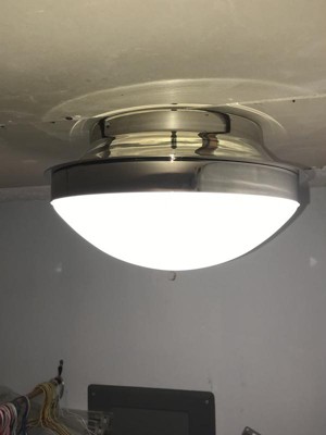 [This review was collected as part of a promotion.] It was Easy to install, it has two spots for light bulbs, it is very sleek and modern style. I like the frosted dome and the silver metal base. Has a little bit of weight to it, not too heavy but feels sturdy and well made. Really brightens up the hallway.