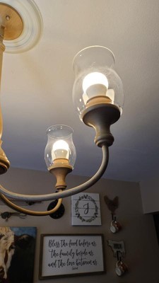 [This review was collected as part of a promotion.] This chandelier came very nicely packaged with no damages to the product. Instillation wasn’t to hard, my fiancé was able to do it by himself without any help. This chandelier looks amazing in my house, the warm maple really went well with the color scheme in my dining room. The chandelier has 5 bulbs and gives off the perfect amount of light!!