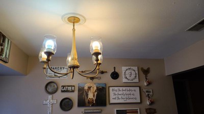 [This review was collected as part of a promotion.] This chandelier is very beautiful andvit goes great with my decor. I love the way the illuminates my dining room,Its a nice warm lighting. It was easy to install. I love the wood look and it gives off plenty of lighting.