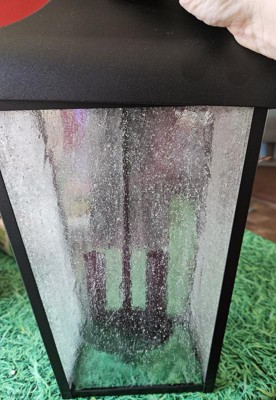[This review was collected as part of a promotion.] If you want a big beautiful light fixture for your outdoors, you should definitely consider getting this one! The light fixture is big and sturdy which looks really nice outside of your home or even on a post. The glass itself is bubble like glass which looks beautifully along with the black framing.