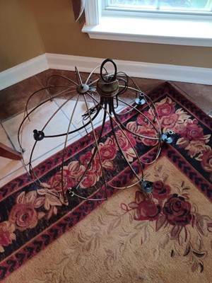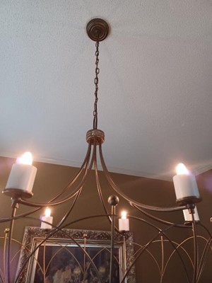 [This review was collected as part of a promotion.] The Topiary chandelier is a beautiful light. We put it in the foyer of our home to replace a small outdated ceiling light. We had decided to leave the wallpaper that was hung in the 1970’s and the light goes well with it. We do all the updates and upkeep of our home ourselves. We found the light a bit on the harder side to put together, but the instructions did make it easier.