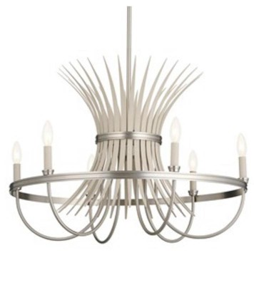 [This review was collected as part of a promotion.] My review is on the Baile 6 Light Chandelier in Brushed Nickel. This chandelier is really modern looking, but also has an elegant vintage look at the same time. I love the gathered wheat design with the arcs, and it's really classy in brushed nickel. With this chandelier having 6 lights, it will really brighten up our room and will make it look new. We are in the process of remodeling our dining area and our kitchen area and this light will be ideal over the dining area table. It will be the perfect focal point for the entire room. I can't wait to get it up even though we have had a few set backs. I recommend this chandelier.