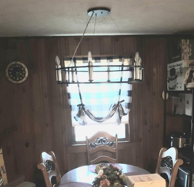 [This review was collected as part of a promotion.] I am really loving the addition of this chandelier to my dining area! This was pretty easy to install. I'd say the most time was spent trying to figure out how high or low we wanted this above my dining room table. I love the look of this fixture as it could easily fit in with farmhouse decor to industrial.