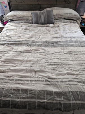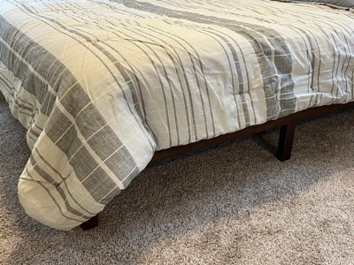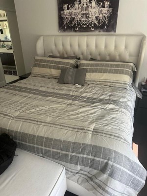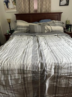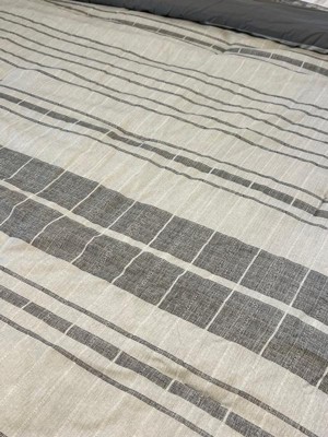 [This review was collected as part of a promotion.] This is the perfect inexpensive way to upgrade your comforter. The color is really nice, it says that it’s black and white but it’s more of an off white. It has the look of linen but it’s cotton. I would say that the linen would have been better. The overall quality is pretty nice. I haven’t washed it yet so I’m not sure how it washes up. I will say, out of the package it has a weird smell to it. Which I’m sure is due to the fact that it’s been in the package a while. It needs a bed-shirt and I would love if it came with matching sheets. It’s a really nice set.