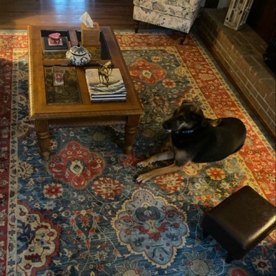 I have several tower Target rugs so I was confident buying confident purchasing this large rug. I bought the ~9x12 navy/red. The colors look great with my room and the pattern is beautiful. I think it looks a little darker in my photo than it does in person.
