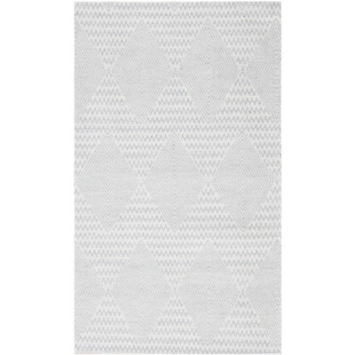The sophisticated silver and ivory color palette brings a serene and stylish ambiance to your space, while the alluring pattern captivates the eye. The design, featuring a geometric diamond motif, adds depth and texture to its contemporary style, ensuring that this rug stands out with its unique visual appeal.