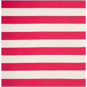 Elevate your living space with a touch of contemporary elegance with our hand woven area rug. Measuring 6 feet by 6 feet, this square masterpiece from India brings warmth and style to any room. Crafted from soft cotton, its red and ivory colors create a visually striking yet versatile piece. The rug's flat profile, with a height of 1/4 inch, ensures it fits seamlessly under furniture while adding a cozy texture to your floor. With its modern design, this rug harmonizes beautifully with a variety of interior themes. Embrace the artistry of traditional weaving techniques reimagined in a contemporary style. Transform your home with a statement that is both subtle and sophisticated.
