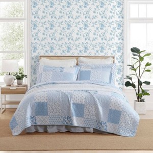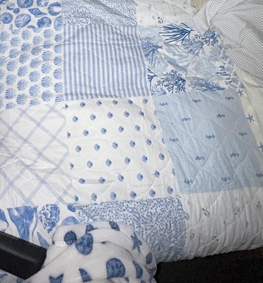 Laura Ashley Colleens Coastal Patchwork Quilt Set Blue