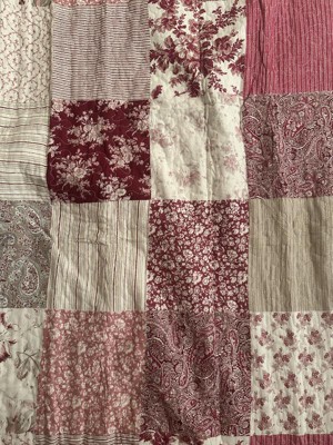[This review was collected as part of a promotion.] Laura Ashley-Celina Patchwork quilt and shams is very well made. The quilt and shams has a beautiful design of dark red plain weave Patchwork. The stitching is very good. Materials the quilt and shams is made from is 80% cotton and 20% polyester making the quilt very warm, not to heavy or light. The quilt is 90 inches x 90 inches the shams size is 21 inches x 27 inches. Very nice quilt and shams. I definitely would recommend this product.