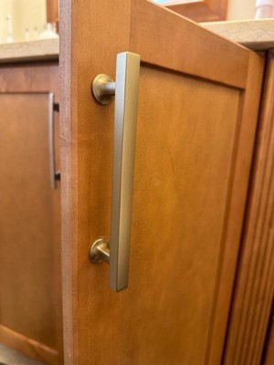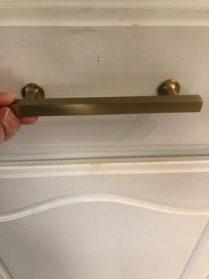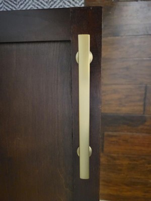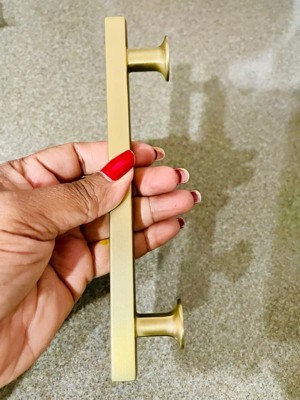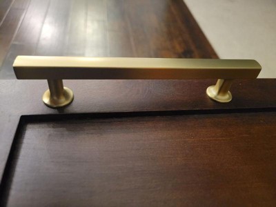 [This review was collected as part of a promotion.] Love the color & golden champagne finish of this hardware from The Amerock. It also has some weight to it which makes it feel super expensive. My only feedback is I wish the foot of the base was also square with soft edges to match the rest of the hardware, versus rounded. Overall though, great piece!