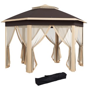 Outsunny 13' x 13' Pop Up Gazebo Hexagonal Canopy with 6 Zippered Mesh Netting, 2-Tier Roof Event Tent with Steel Frame for Patio Backyard