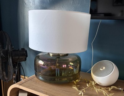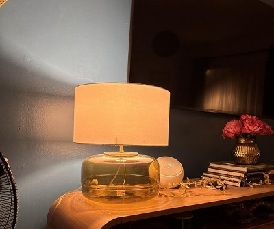 Storied Home Amber Glass Table Lamp with White Cotton Shade: UL Listed, Modern Decor, 40W E26