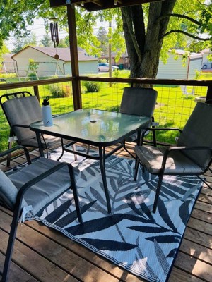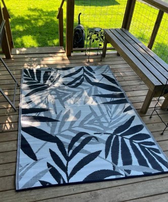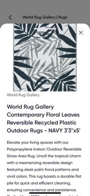 World Rug Gallery Contemporary Floral Leaves Reversible Recycled Plastic Outdoor Picnic Mat, Camping Rug, RV Rug - NAVY 5'x7': Stain & UV-Resistant