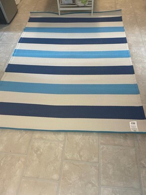 [This review was collected as part of a promotion.] This blue 5'x7' World Rug Gallery Contemporary Stripe Reversible Recycled Plastic Polypropylene Outdoor Reversible Straw Area Rug has bold colors and adds style to our patio. It’s easy to clean, cute, & durable.