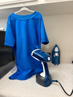 [This review was collected as part of a promotion.] This is only the second steamer I’ve ever used. The first was from Conair. They both functioned about the same, but what I like about this one is the base and that it stands up when you set it down. It’s very easy to use and doesn’t take long to heat up at all. It does a fine job getting wrinkles out, but it take a little time around the hem of the shirt. Personally I think I’ll always prefer an iron but it gets the job done with a little patience.