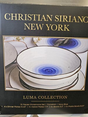 Christian Siriano Luma 16-Piece Dinnerware Set Porcelain, Service for 4, Blue