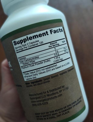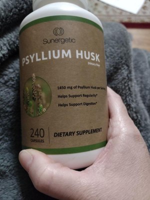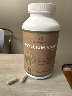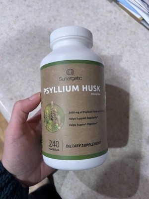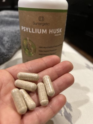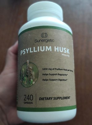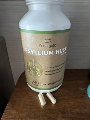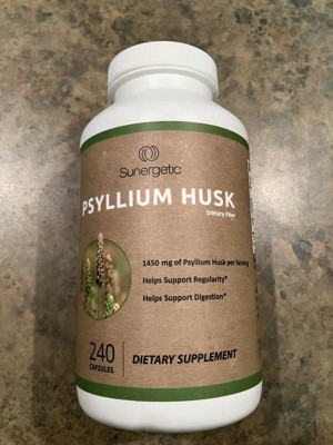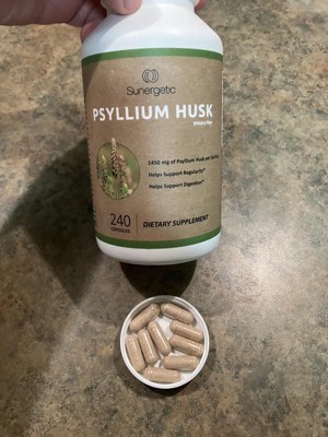 These Sunergetic Psyllium Husk Supplement Fiber Capsules are so much quicker & easier to take than the powder form. This psyllium helps to keep me regular. I take up to four capsules a day with water. They are somewhat larger than I’d like. They have a strong smell in the bottle, however they don’t have any taste to them. I like that they’re made of natural ingredients. This is a convenient way to take fiber & I like the capsule form. The bottle is easy to open with a regular twist cap. Thy come in a large bottle, so when I travel, I put them in a smaller travel friendly container.