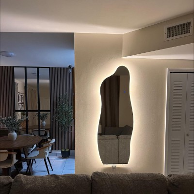 Dovelina LED Full-length Mirror Backlit Mirror Modern Full Length Mirror Frameless Irregular Mirror Large Asymmetrical Mirror - 24"x63"
