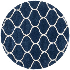 Hudson Shag SGH280 Power Loomed Indoor Area Rug - Navy/Ivory - 7' Round - Safavieh