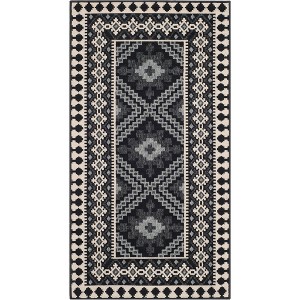 Transform your living space with this stylish 2'-7" x 5'-0" area rug, showcasing a black and creme geometric pattern. This small rectangle rug, with a sleek height of 1/8", is power loomed for a refined finish. Made from a blend of 87 percent polypropylene, 9.3 percent polyester, and 3.7 percent latex, it offers a charming touch to any room. Embrace the traditional style that adds depth and character, crafted in Turkey with care. Ideal for adding a layer of sophistication, this rug complements various decor styles while standing out with its unique design. Perfect for any area, it enhances the ambiance, making it a versatile choice for your home.