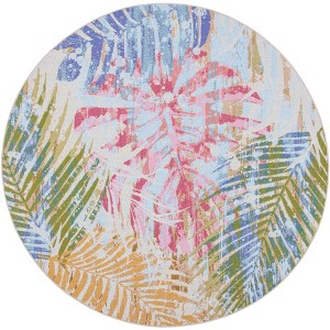 Summer SMR487 Power Loomed Indoor/Outdoor Area Rug - Blue/Beige - 6'7" Round - Safavieh