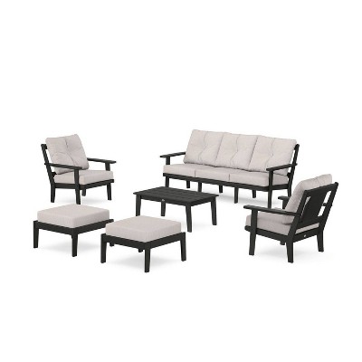 With the Prairie 4-Piece Deep Seating Set with Sofa, relaxation is your destination. Generously sized and comfortably cushioned, the chairs and sofa are made for getting out and settling in. A coordinating coffee table keeps happy-hour refreshments on hand. The overall aesthetic is a nod to Craftsman furniture, refreshing it with cleaner lines and square shapes for style that endures.