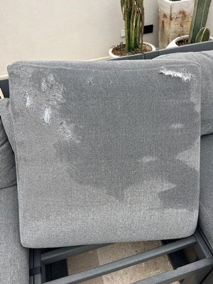 Hi Frank, Thank you for taking the time to leave your feedback. We are sorry to hear of the issues you're having with your cushions. While our cushions are constructed out of fabric made to endure harsh outdoor conditions, the cushions are still susceptible to stains and damage — especially if they’re left out during winter or a rainstorm. We recommend tipping cushions up on their side to aid them in drying faster. Thanks, Lana