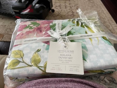 • LEVTEX MALANA : The Malana comforter collection is a beautiful painterly depiction of tropical flowers and leaves. The set consists of a comforter and matching pillow case.