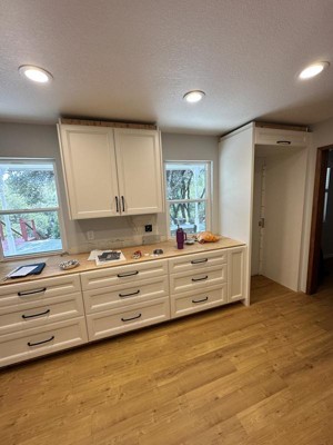 Antique bronze handles are a perfect compliment to upgraded kitchen