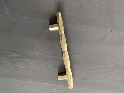 [This review was collected as part of a promotion.] Nice soft gold tone, artsy finish makes this a classy, unique pull. Easy to install