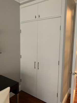 These pulls enhanced the look of my new cabinets. I did the larger for doors and smaller for drawers and the matching knob for garbage bin. They are a nice weight and sturdy. Loved my purchase.