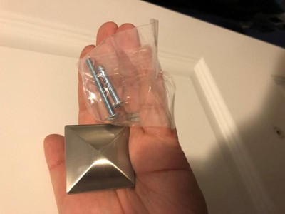 [This review was collected as part of a promotion.] The satin nickel know is a great know to add a little touch to any dresser. It has one screw and can been Simply installed.