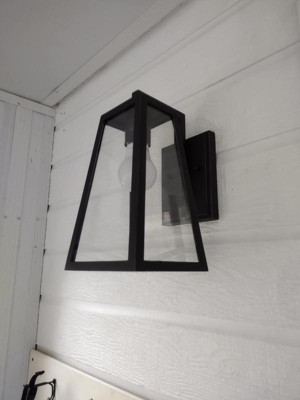[This review was collected as part of a promotion.] This wall lantern has a modern country look to it. It is a pretty long light so the space needed to put it up is a bit more than typical. I like that the panels are completely clear and do not have any pattern to them. It took less than thirty minutes to take down the old fixture and install this new one. The directions were very unclear with no useable diagrams in them. Besides the instructions, this light is very modern and fits well in my sunroom area.