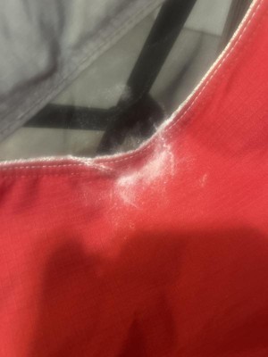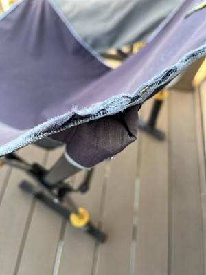 I bought this last fall , used it twice and put it in the garage. Took it out this week to take camping for Labor Day weekend and I opened it up to check for any spiders that may have found their way in the carry bag and after inspecting the chair I found the edging material was disintegrating just by touching it and rubbing between my fingers it was turning to dust like material! Why make a chair like this and not have any UV Sun protection?? It’s a camp chair you can’t take outside or use camping! Waist of money! Would NOT Recommend!