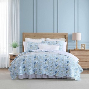 Laura Ashley Peony Garden Quilt Set Blue - 1 of 4