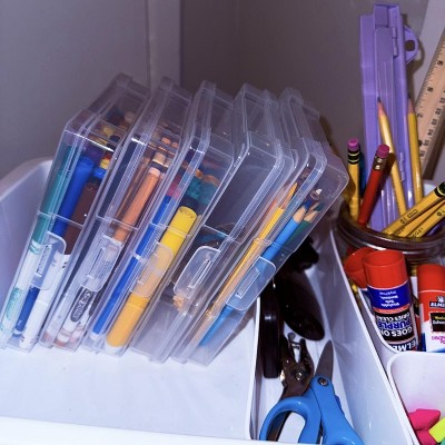 Organize your pencils and other stationery with the Small 5x7 Pencil Box Storage Case 2-Pack from up&up™. This pack of two pencil storage cases features a rectangle shape with an easy see-through design. Made of plastic, these storage cases have clasp closures to help keep the contents secure.