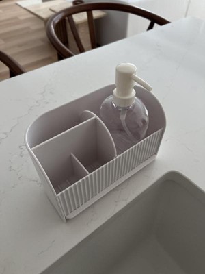 I love this sink caddy! So great for the kitchen, bathroom, or laundry room, to keep things around the sink organized. It's customizable with the removable divider, and the design is very aesthetic. It also comes with a soap pump, which is very convenient, but I just used my own bottle as I already had it filled. Overall a really functional and well-designed product.