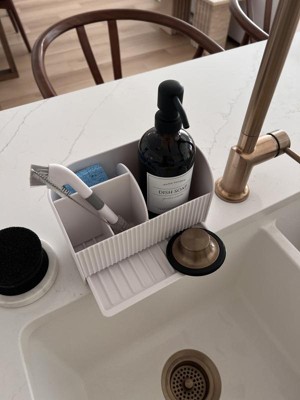 Such a cute and functional caddy for the kitchen. I love the multiple compartments to store various cleaning tools and the pull out tray for drainage.