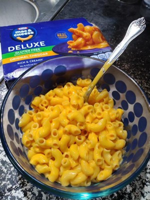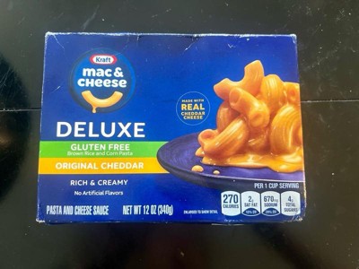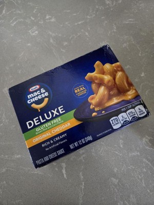 [This review was collected as part of a promotion.] I received a free box of the Kraft deluxe gluten free Mac and cheese thanks to Kraft and Influenster. My honest review is extremely positive and I plan on buying this Mac and cheese regularly. It was in the flavor original cheddar. It was a bit salty like any box mix but the cheese flavor was good. It was rich and creamy and incredibly easy to prepare. Now the part that really matters which is the gluten free noodles. They had awesome structure and held up, not mushy not chewy, just right. You couldn't tell they were gluten free which is exciting. I'd highly recommend this product.