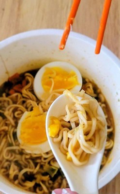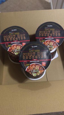 [This review was collected as part of a promotion.] The Ramen was very flavorful and smells nice but definitely spicey even without the extra spice packet it came with (which is optional depending on your tolerance). It came in a round microwaveable bowl and was easy to prepare with just water and seasoning packets it came with. Noodles were soft in texture after cooking. Only downside is the sodium is high so something I wouldn't eat frequently but overall great taste and filling.