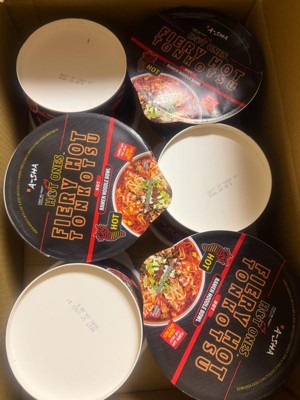 [This review was collected as part of a promotion.] I added just a little bit of the extra hot powder to my Ramen noodles after cooking it, and it made my noodles extremely high and burnt my lips inside of my mouth, and I swear my nose was burning. It’s got plenty of heat. The texture is good. The noodles don’t get real soft and soggy. They’re not chewy though the broth taste absolutely delicious. It’s got 13 g of protein in it. The only thing is is that I got a pack of six in the box and three of them were open .