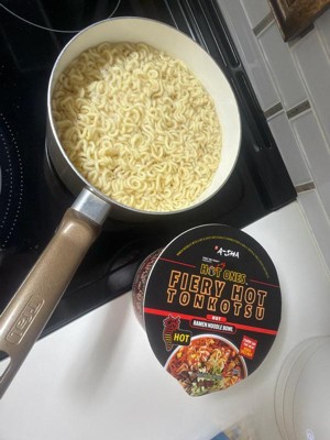 [This review was collected as part of a promotion.] This Hot Ones Tonkotsu has great noodles texture and a solid savory base. It’s definitely spicier than your average cup, especially with the bonus pack. It’s a quick, tasty burn for any spice lover!