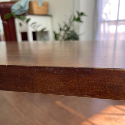 This bench is a great size. It’s heavy and sturdy. Has a wide seat. Has a beautiful color brown stain similar to mahogany though not quite as much golden tones. My issue is, it’s not wood. It is sold as “wood” though it’s composite with veneer wood application. I’d like to say they could do a better job with patching damaged areas at the warehouse as well.