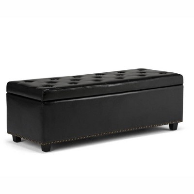 WyndenHall Blanchette Mid Century Rectangular Storage Ottoman Distressed Black