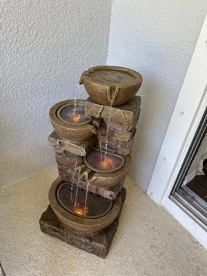 [This review was collected as part of a promotion.] The Teamson Home 33.25 in. Cascading Bowls and Stacked Stones LED Outdoor Water Fountain is a stunning addition to any garden. Its elegant design, featuring beautifully crafted cascading bowls and realistic stacked stones, brings a serene and tranquil ambiance to outdoor spaces. The gentle flow of water, illuminated by soft LED lights, creates a soothing atmosphere perfect for relaxation and unwinding after a long day. The quality of the materials used is exceptional, ensuring durability and longevity even when exposed to the elements. Installation is straightforward, with clear instructions that make setting up the fountain a breeze. Once operational, the pump runs quietly, allowing the peaceful sound of the cascading water to take center stage. One of the standout features is the built-in LED lighting, which adds a magical touch to the fountain, especially during the evening hours. It transforms the garden into a picturesque oasis, making it a perfect focal point for gatherings or a quiet evening alone. Overall, the Teamson Home Cascading Bowls and Stacked Stones LED Outdoor Water Fountain is a worthwhile investment for anyone looking to enhance their outdoor space with beauty, tranquility, and a touch of elegance. Highly recommended!