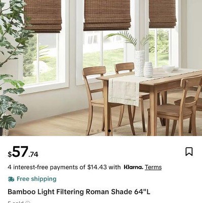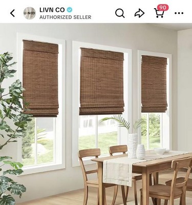 LIVN CO. Woven Natural Bamboo Light Filtering Roman Shade, White 33x64"