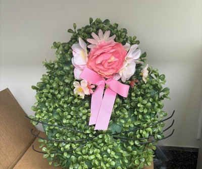 Looks better online than when you actually get it. Definitely needs more boxwood. Looks very cheaply made.