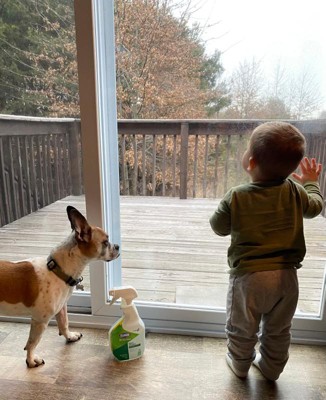 [This review was collected as part of a promotion.] I love this product so much. I’ve been trialing more eco friendly/kid friendly products and this one is FANTASTIC! It works well with no streaks and the best part is it has almost no smell! I have two toddlers and a large dog. My back door glass is a constant mixture of dog and baby slobber, hand prints, dirt, dried on milk (see pictures) and the occasional crayon/chalk artwork. The pictures are of one normal spray down and quickly wiping with paper towel. It left a streak free shine and got rid of most of the smudges. The dried on milk splatter required a second spray but came off with a little scrubbing. I love that I can use this when my kids are awake! Other cleaners I’d wait until nighttime to clean the door since I didn’t want them exposed to the smell of glass cleaner or touching the chemicals before they were fully dry. This has almost no smell and dries fast! It is a fantastic alternative to traditional glass cleaner and so far the only ammonia free one I have found to work.