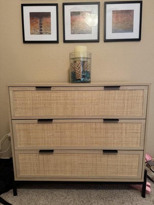 Nathan James Andrew 3 Drawers Storage Cabinet with Natural Rattan Accent and Metal Legs: Bohemian Charm, Ample Storage