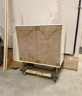 Nathan James Beacon Storage Cabinet Wood and Seagrass White: Veneer Surface, Fixed Shelf, Adult Assembly Required